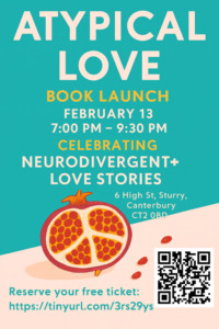 | Atypical Love Book Launch Chapters Coffee and Book Shop, Stury, Kent. Feb 13th 2026 (Friday) 7.00pm-9.30pm ![]() | Join us for the launch of Atypical Love — a vibrant new anthology celebrating Neurodivergent+ voices and the many shapes romance can take. Created through our Neurodivergent+ arts collective, MixMatched, and supported by Arts Council England, Atypical Love brings together short romantic stories from nine local Neurodivergent+ authors. Each piece offers its own take on love, connection, and human complexity, all written from perspectives too often overlooked in mainstream publishing. We are thrilled to host this intimate launch event at Chapters, a much-loved family-run bookshop café known for its cosy atmosphere and community spirit. The anthology features a thoughtful foreword by acclaimed autistic author Joanne Limburg, whose work (including the deeply moving Letters to My Weird Sisters) explores identity, womanhood, and the lived experience of being different. | Reserve Free Ticket Here! |