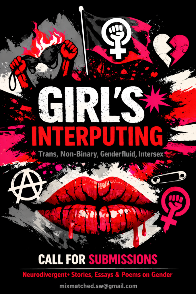 Looking for Neurodivergent+/Neuroqueer individuals who write (or have written) about gender expectation and being neurodivergent. Being a ‘Girl’ is loaded with societal expectation, constraint and anxiety… but what happens if you were born ‘differently wired’… unable and/or unwilling to ‘fit’ – naturally radical – it is time we claim our place